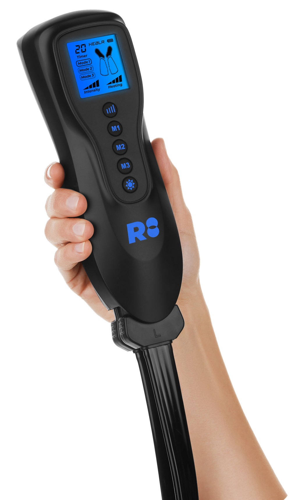 These are massage boots — calf and foot massagers offering triple therapeutic action: air compression, heat, and cold (special precooled pads go into the internal pockets).