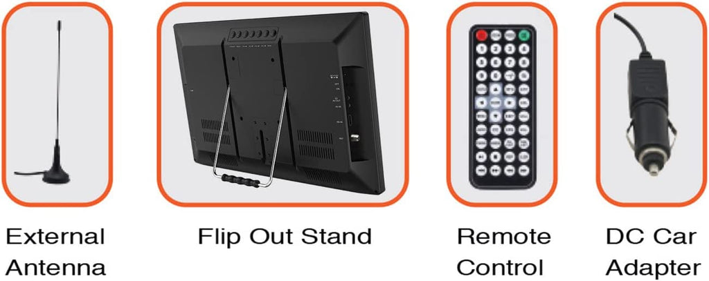Portable 13.3″  12 Volt AC/DC TV and Digital Multimedia Player with Built-in Rechargeable Lithium Battery & DC Car Cord