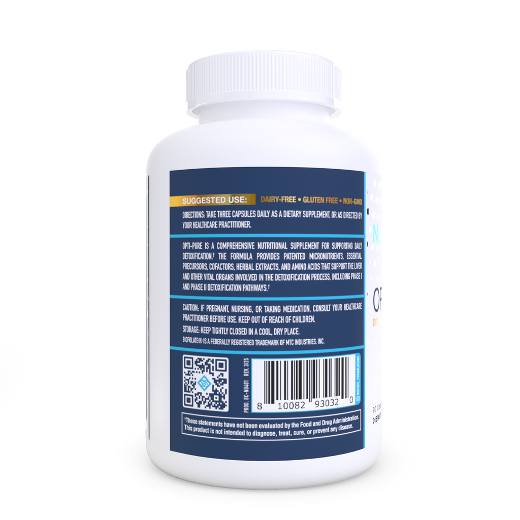 Opti-Pure is a comprehensive nutritional supplement for supporting daily detoxification. The formula provides patented micronutrients, essential precursors, cofactors, herbal extracts, and amino acids that support the liver and other vital organs involved in the detoxification process, including phase I and phase II detoxification pathways.
