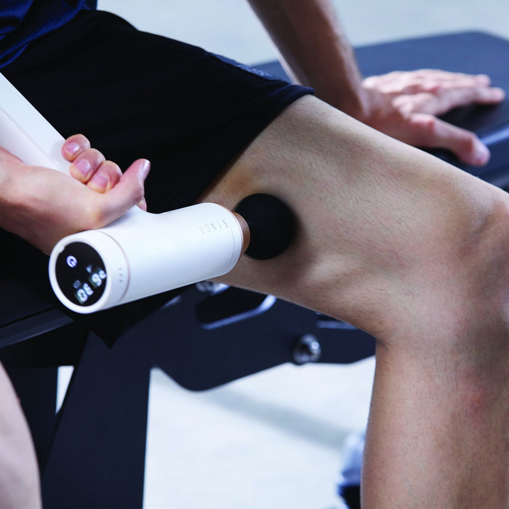 The Synca Wellness Kitta percussive massager uses high performance brushless motors to provide a deep penetrating massage to workout any muscle tension with ease. Brushless motors are quieter, more responsive, and last 4 times as long as a brushed motor. The kitta comes with 6 interchangeable quick dis-connect massage heads that ensure you have the right tool to deliver the most effective massage to the targeted muscle group. The 3rd gen Lithium Ion battery delivers up to 10 hours of usage so you'll run out of energy before your Kitta. The included travel case makes it easy to throw in your gym bag or take with you when your out and about. The external finish on the kitta is designed to be able to be easily wiped clean and doesn't have any rubberized handles that are difficult to sanitize and keep germ free. The Synca Wellness Kitta massager will become an essential part of your recovery process. -