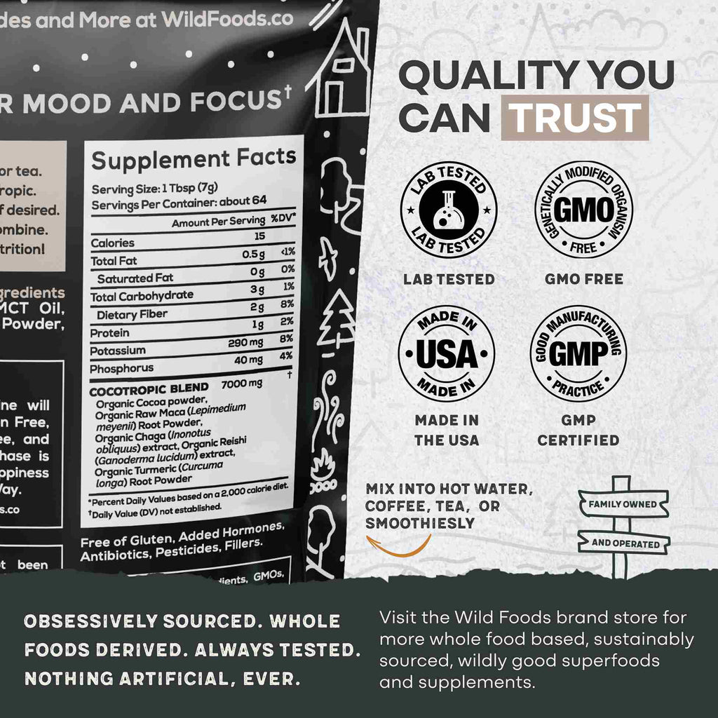 CocoTropic, 32 servings – Organic Mushroom Mix for Energy & Focus by Wild Foods