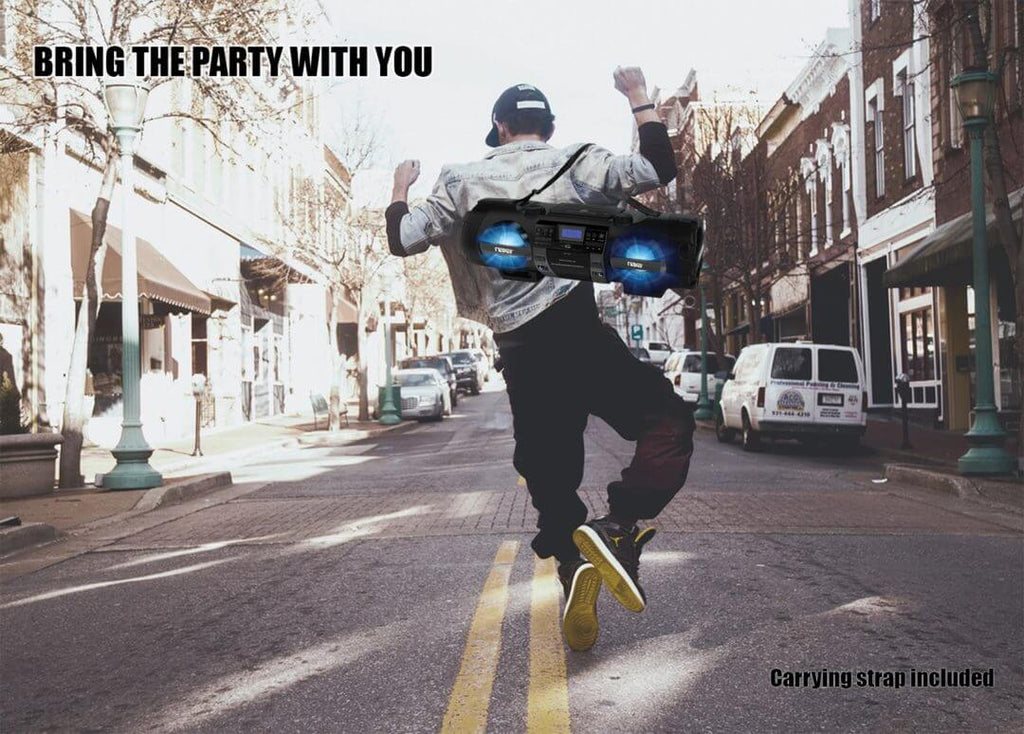 • Product Description:  A big boombox that delivers bass you can feel with wireless Bluetooth® and two microphone connectors