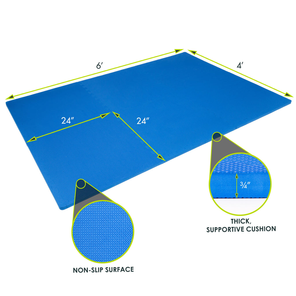 Easily transform any space into a comfortable workout area with the ProsourceFit Exercise Puzzle Mat ¾”. The dense, 3/4"-inch thick interlocking foam tiles create protective flooring and a cushioned slip-resistant surface that covers 24 square feet.