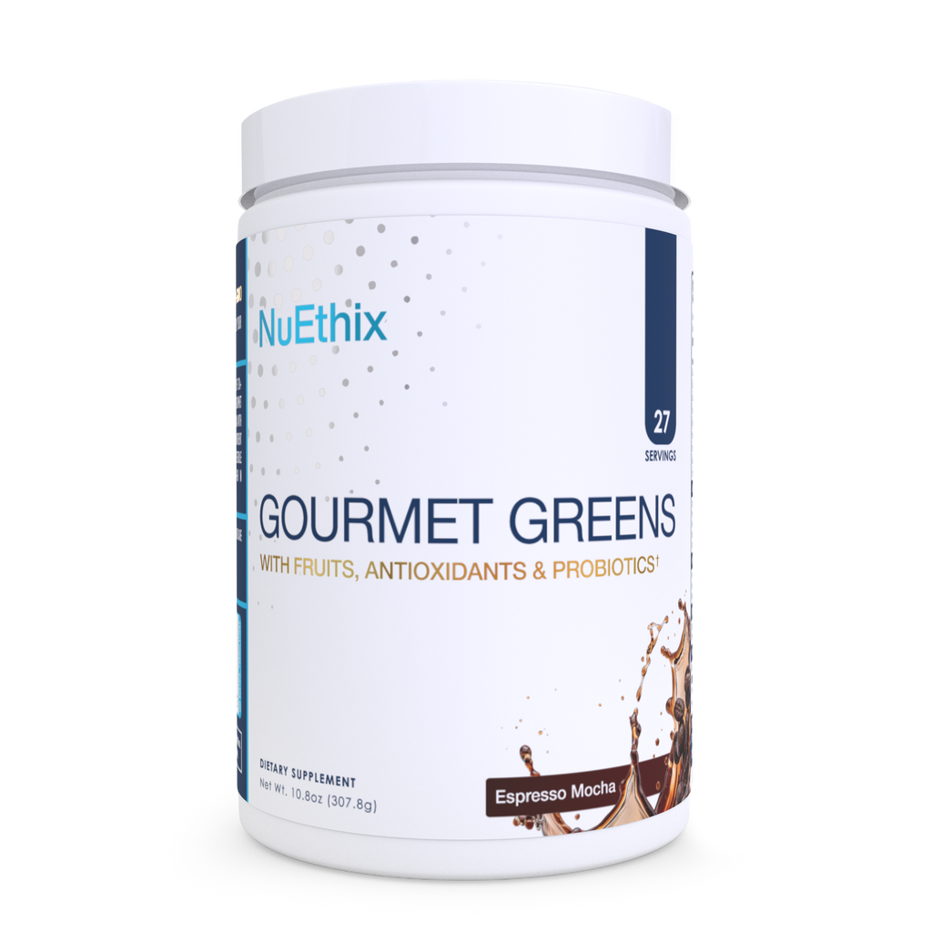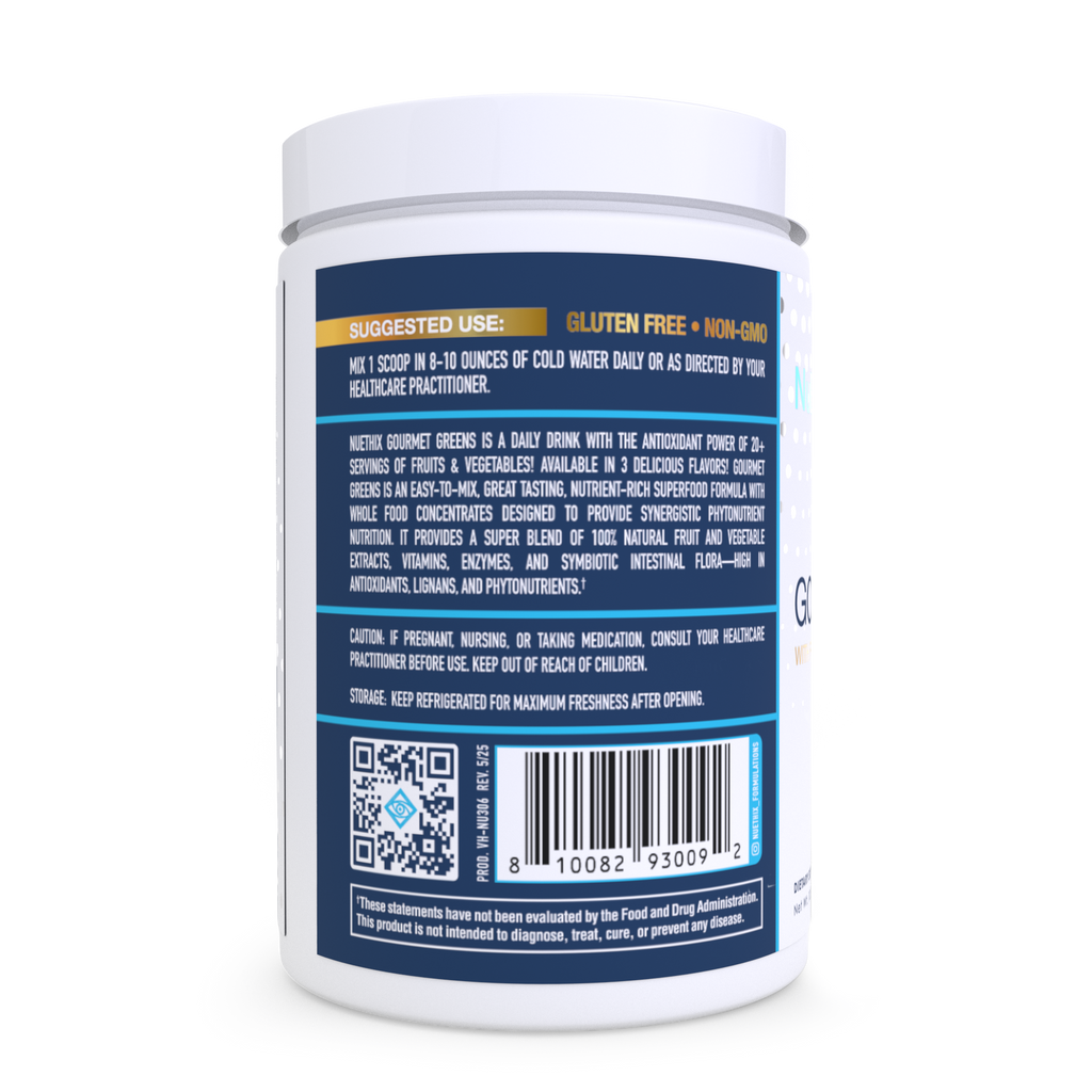 Gourmet Greens is a daily drink powder supplement with antioxidant power from over 20 servings of fruits and vegetables.