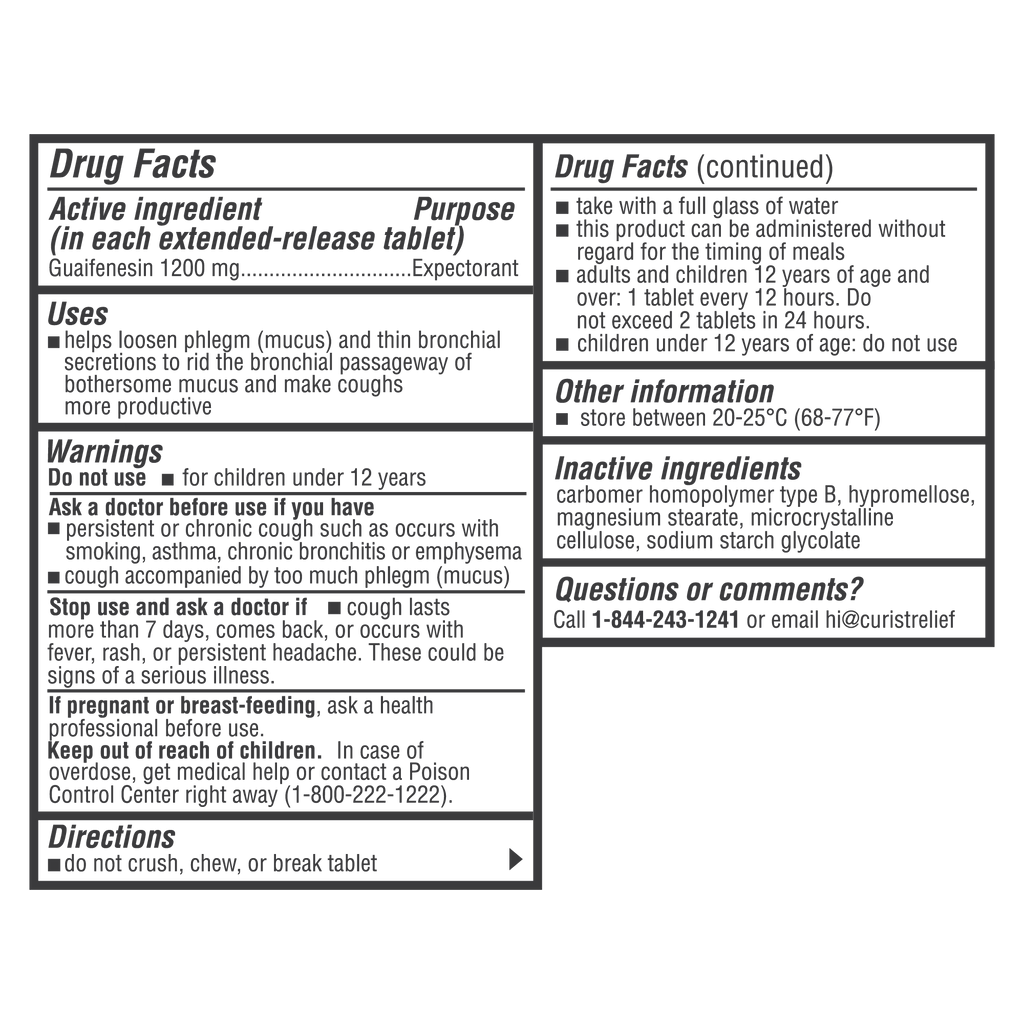 Active Ingredient: Guaifenesin 1200 mg extended-release, 150 tablets