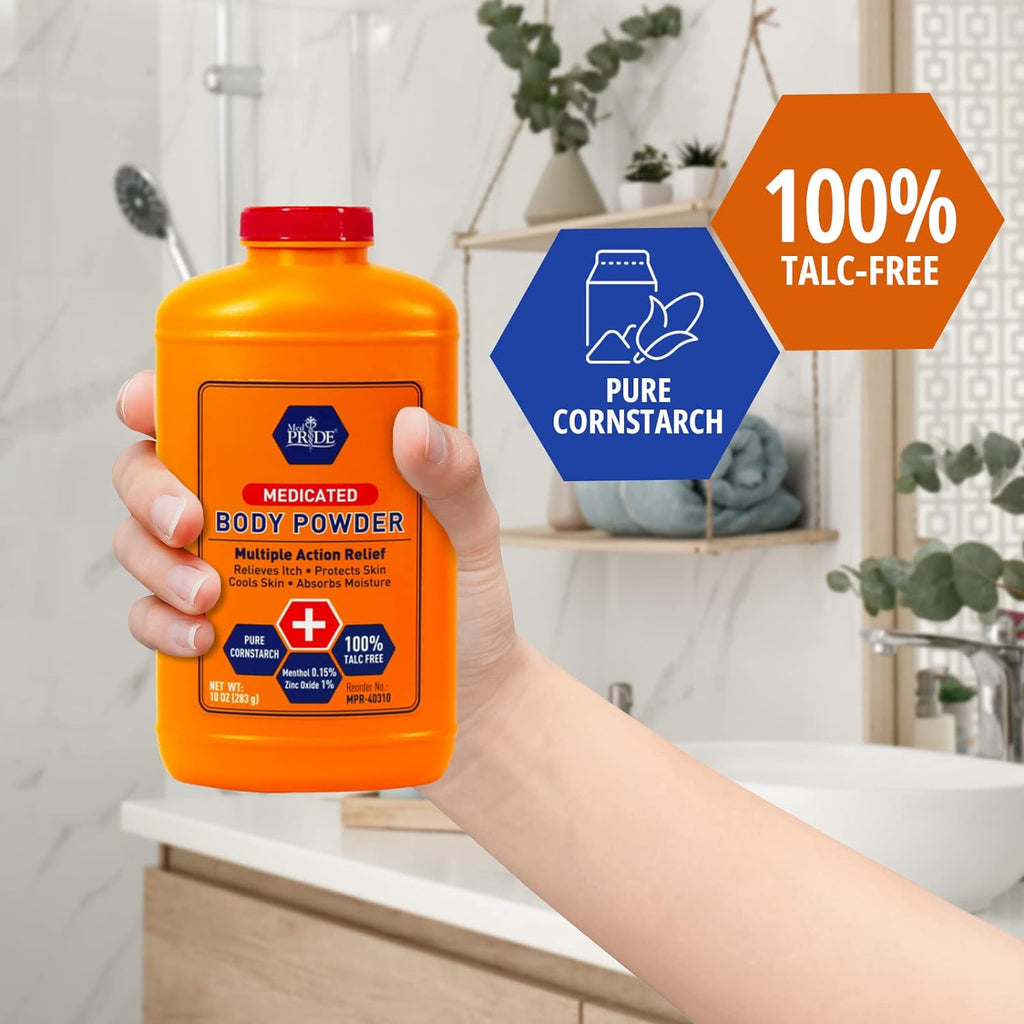 Find relief from itching and irritation with MedPride Medicated Body Powder with Zinc Oxide Talc-Free Cornstarch Baby Powder with Seal, 10 Oz!