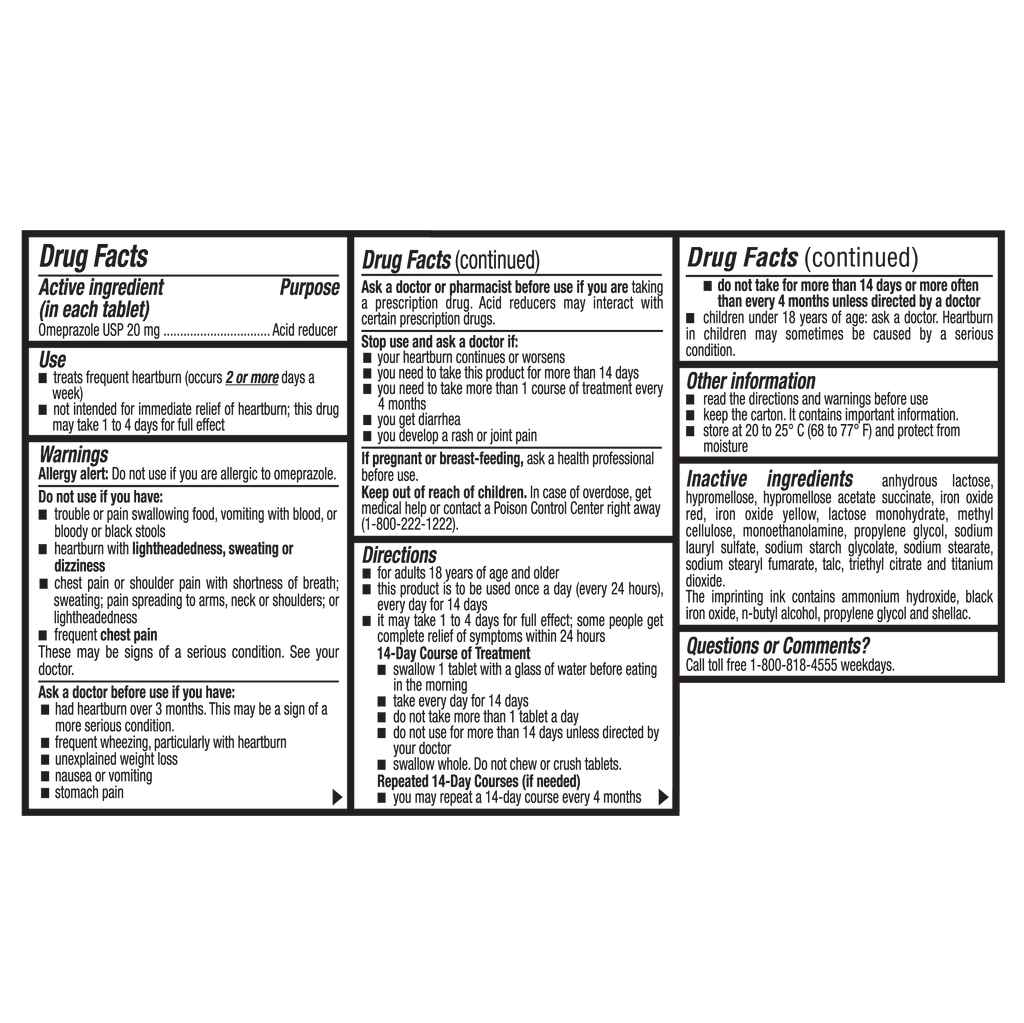 Active Ingredient: Omeprazole 20 mg, 42 tablets