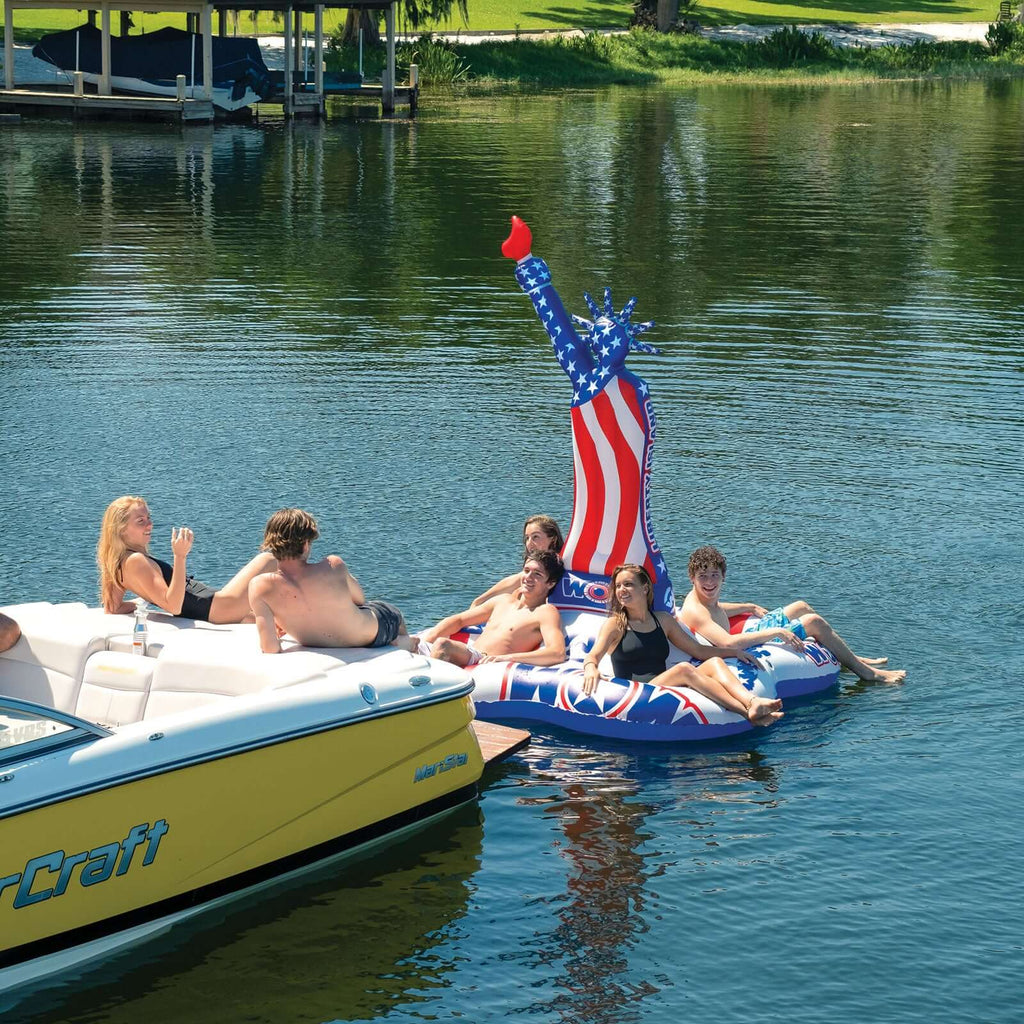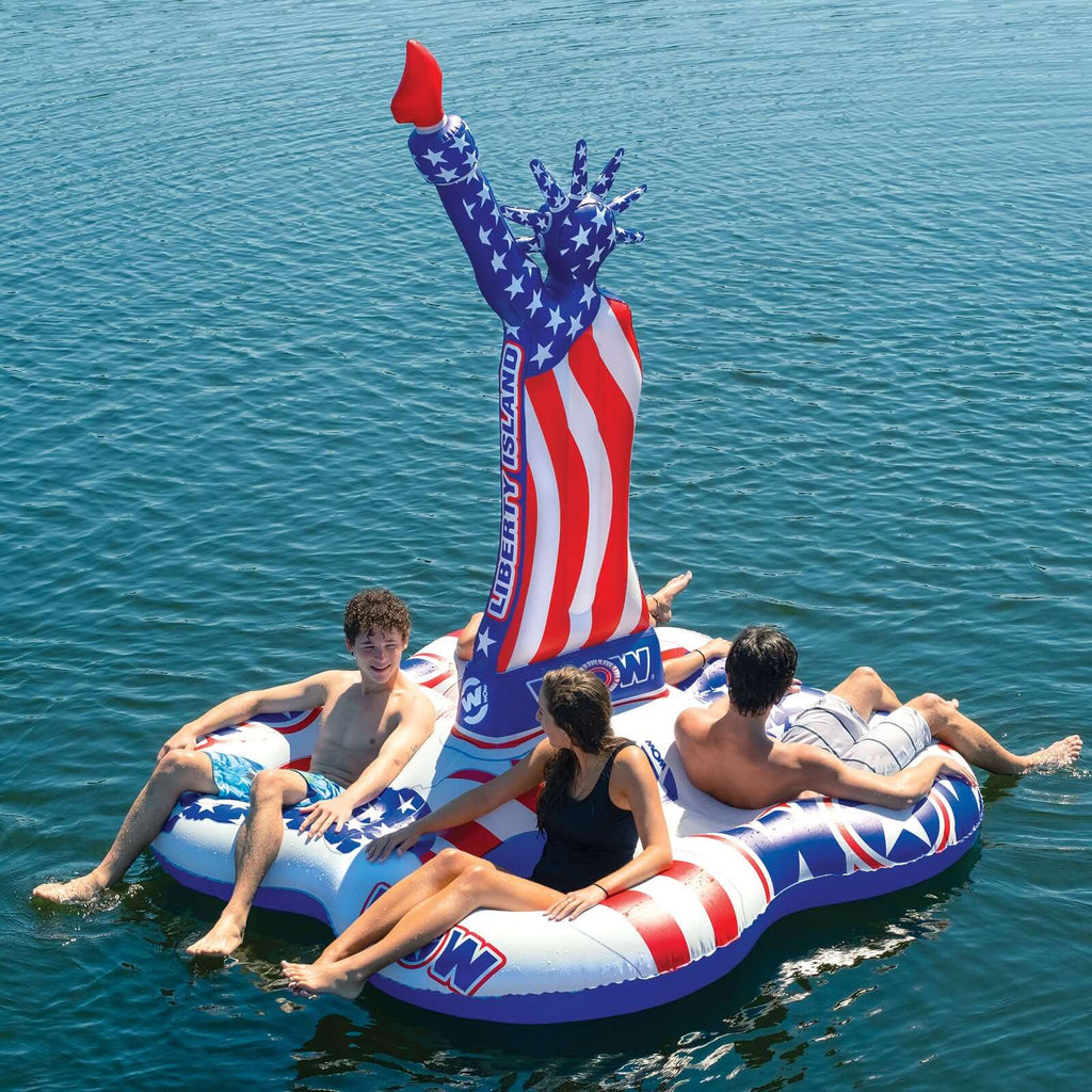 The Liberty Island from WOW is the 4-person inflatable island you need this Fourth of July! This HUGE Americana inflatable island is perfect for your favorite party cove or for floating down the river. The Liberty Island has 4 separate mesh seats for each person and a tall, proud Lady Liberty at the center. Red, white and WOW, it's perfect to celebrate what it is to be American.