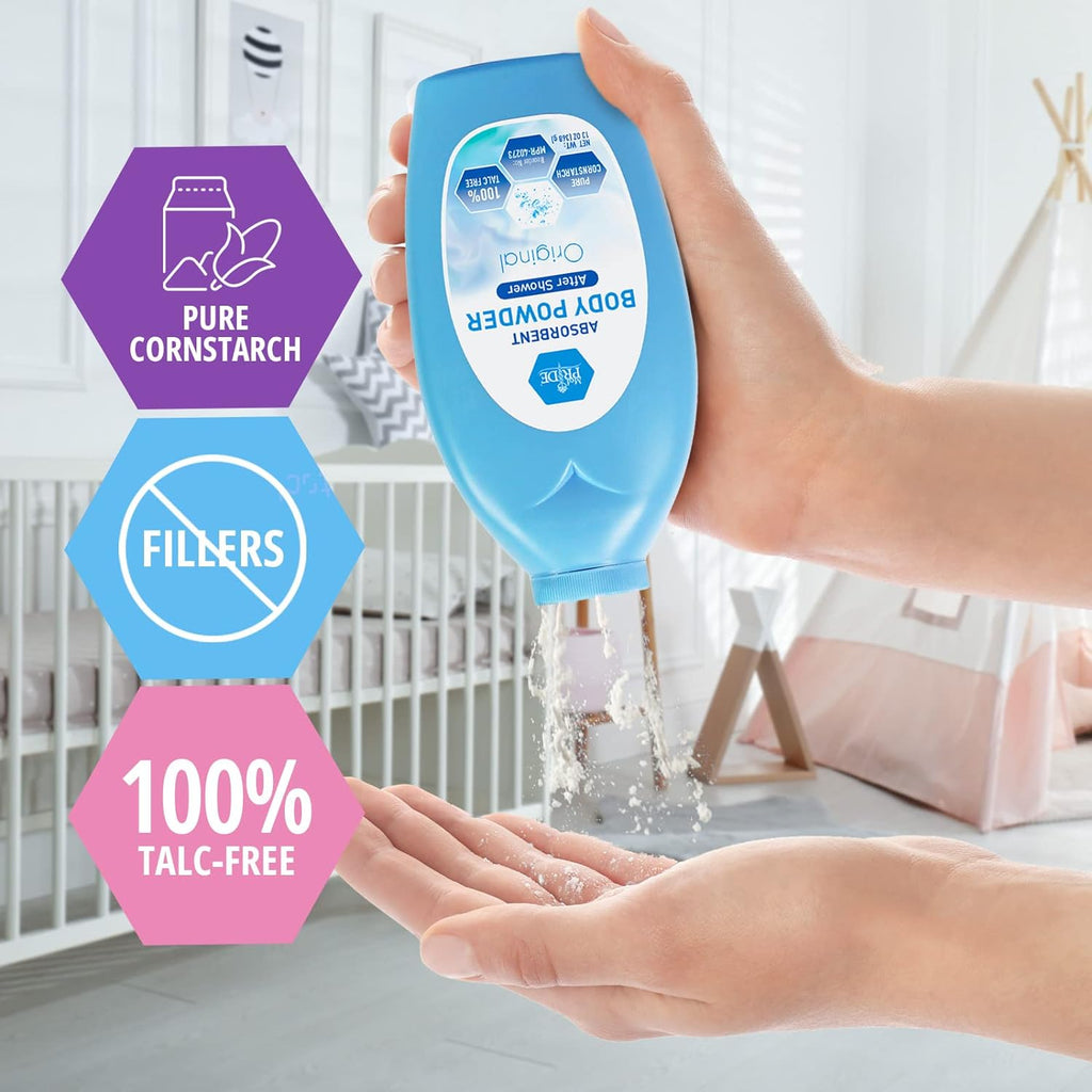 Offer your little one the soothing touch of the MedPride Premium 100% Talc Free Baby Powder w/seal that works wonders on absorbing excess moisture to help prevent and ease diaper rash and its painful symptoms.