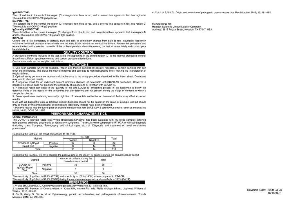 The Healgen COVID-19 Rapid Antibody Test Kit offers a fast and effective solution for detecting COVID-19 antibodies. This kit is designed for professional use, providing results in 10 minutes or less, which aids in quick assessments. All orders are subject to screening, and a valid CLIA certification is required for purchase. This product has received FDA Emergency Use Authorization (EUA) for CLIA-certified laboratories performing moderate and high complexity testing.