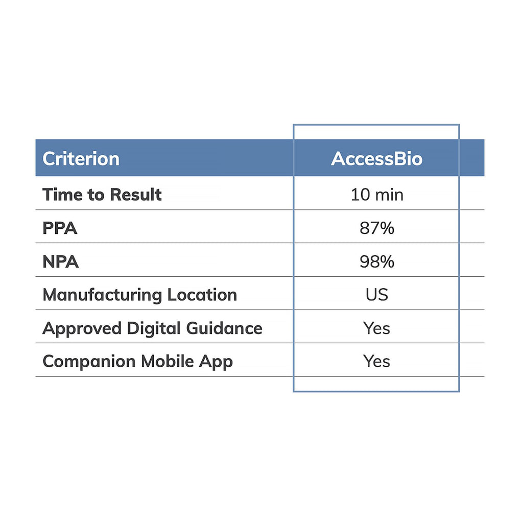 • השימוש המיועד בבדיקה זו הוא לבדיקה פעמיים במהלך יומיים או שלושה עם לפחות 24 שעות ולא יותר מ-48 שעות בין בדיקה לבדיקה.