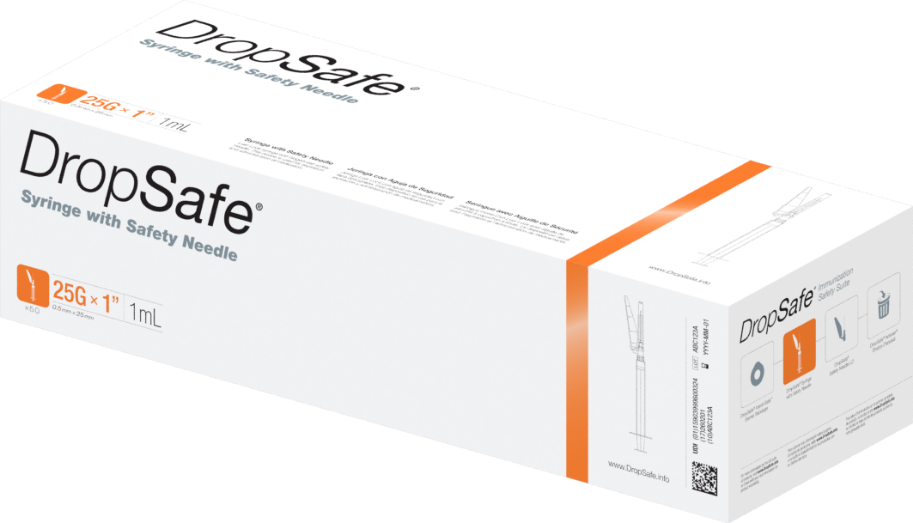 DropSafe מזרק Combo מחט בטיחות 25G x 1", 1 מ"ל, 50/BX, 6BX/CS