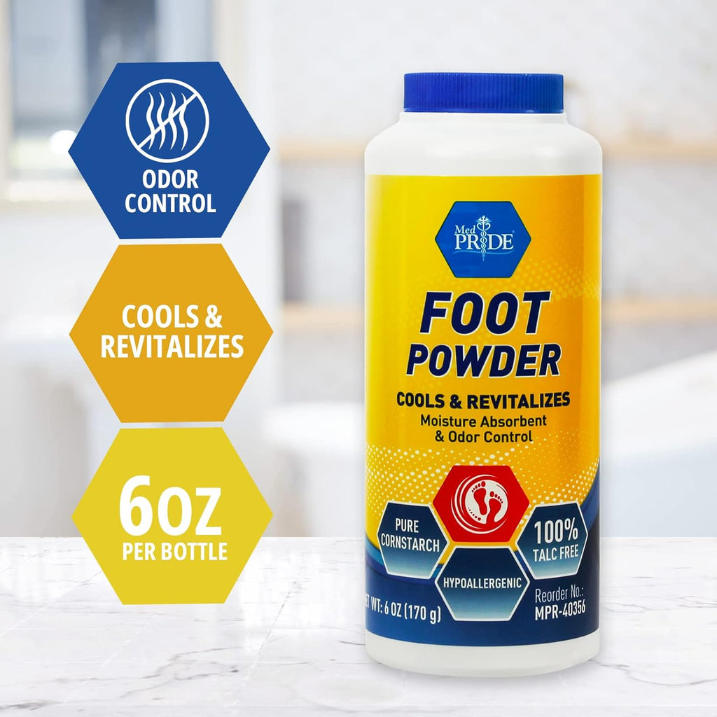 Keep Excess Moisture, Sweat And Odor At Bay With The Best MedPride Cooling Foot Powder Talc Free Odor Absorber Shoe Deodorizer, 6 Oz w/seal!