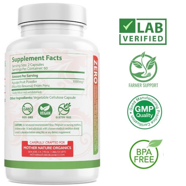 Fulfilled by our friends at Mother Nature Organics About Aguaje Capsules Mother Nature Organics Aguaje pills are made with the pure Aguaje fruit, rich in Phytoestrogens, vitamins, and minerals that enhance the internal and external health of your body, skin, and hair. Aguaje powder is also referred to as Buriti and can be extracted to form a healthy oil called Buriti Oil. Aguaje has quite a reputation and is nicknamed 'The Curvy Fruit'. When combined with Red Maca Powder or Red Maca Capsules the benefits are magnified, as these two natural herbs work quite well together. In fact, continuous usage of these pills has shown results within 2-3 months of use. Our Aguaje pills are gluten-free, with no fillers, and Wildharvest Cultivated from the banks of the pristine Amazon River in the rainforest. Main Nutritional Benefits of Aguaje Pills: Aguaje powder contains Beta Carotene (vitamin A) and is 20 times more provitamin A than carrot. Tocopherols (vitamin E) 25 times more vitamin E than avocado. Ascorbic acid (vitamin C) same vitamin C as an orange Phytoestrogens and oleic acids, important in human nutrition, especially in women throughout their lives and especially at menopause. Ingredients: Aguaje fruit pulp powder (Mauritia flexuosa), Hypromellose (Vegan capsule). Storage Information: Refrigeration not required. Store Aguaje pills in a cool, dark, dry place. Aguaje Pills Side Effects and Contraindications : There are no known contraindications to consuming Aguaje because they are classified as a fruit and root. However, we recommend that you consult with your doctor if you have any specific health concerns. Aguaje Powder Customer Reviews Before and After Testimonials Get those perfect curves you've always wanted, try our Aguaje product now, and join the many customers raving about the results. These are just two reviews of hundreds of women testifying the benefits of Aguaje. Benefits include curve enhancement, hormonal regulation and balance, relief from menopausal symptoms such as hot flashes, dryness, and stabilizing the symptoms pertaining to mood and depression. Read on to the testimonials from actual customers! " Aguaje Works! I loved the product. I’ve been a stick my whole life and still to this day I have appetite issues. Even tho I miss my meals these pills helped keep my curves. I’ve noticed my change within a month in hips and butt" " Highly Recommended! I'm 47, and I've been using AGUAJE for six months. This product is helping me to feel better without the dryness, itching, and burning sensation (both inside and outside of the vagina). Aguaje Pills reduces hot flashes and also improves the skin making it softer. It works better than soja products." Read Our Frequently Asked Questions About Aguaje How to Take Aguaje Pills? Where to Buy Aguaje Pills? Read Our Newest Blog Articles About Aguaje 5 Amazing Benefits of Aguaje Fruit for Women's Health Backed By Science - [New Data in 2021] Reference Information About Aguaje Aguaje Fruit on Wikipedia Mauritia Flexuosa on Wikipedia GUARANTEED PURITY : Harvested from the heart of the Peruvian Rainforest in a GMP, HACCP-certified facility for unmatched purity and guaranteed quality. 100% GUARANTEE & FAST SHIPPING FROM USA : Your order is guaranteed to arrive fast and we offer a no-questions-asked satisfaction guarantee on all of our products.