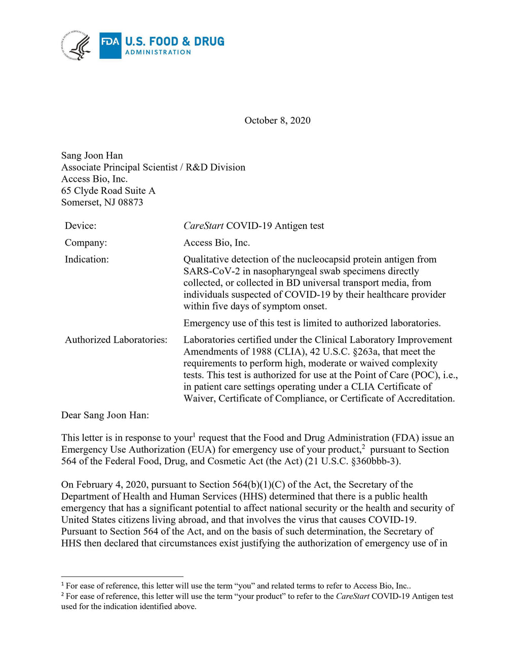 The CareStart™ COVID-19 Antigen Test is a rapid lateral flow assay designed for the qualitative detection of SARS-CoV-2 nucleocapsid protein antigen. This test provides quick results in just 10 minutes, making it ideal for efficient point-of-care (POC) settings.