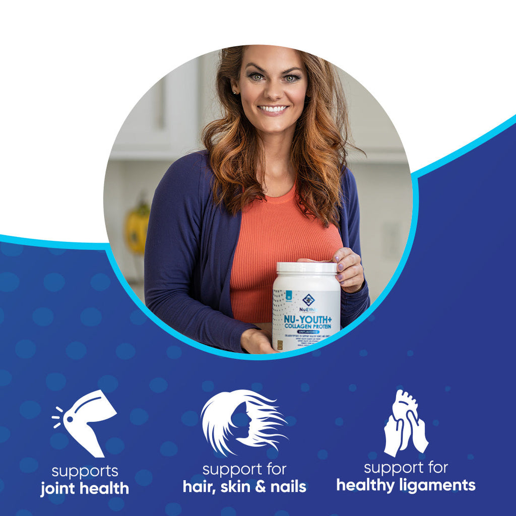 Nu-Youth+ Collagen Protein is an unflavored blend of collagen peptides to support healthy skin, bones, and joints.* This concentrated dietary source of collagen is an excellent choice to support high protein intake with a host of health benefits.*