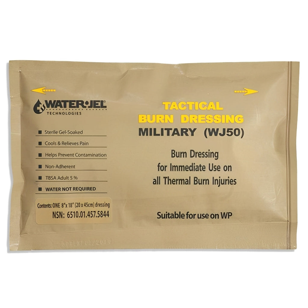 Water-Jel sterile gel-soaked 8″x18″ tactical burn dressing for immediate use on burns. A larger burn dressing. Excellent for covering sizable areas, such as the thigh, shoulder or back
